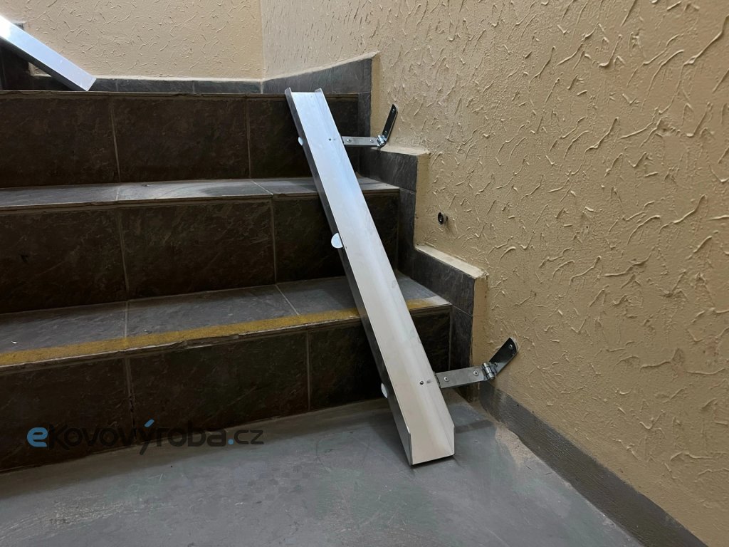 Protiskluzový systém a ochrana ostrých hran. Uchycení na pevno, či sklopné na panty s magnetickým uchycením pokud to prostor dovoluje. Tato nájezdová rampa je ideálním řešením pro místa, kde je potřeba překonat jeden či více nízkých schodů bez trvalých stavebních úprav. Konstrukce z lehkého a odolného kovu zajišťuje vysokou stabilitu při použití a zároveň pohodlné přenášení. Protiskluzový povrch přispívá k bezpečnému nájezdu, zatímco boční ohraničení pomáhá udržet kola ve správné stopě. Rampa je vhodná pro kola a koloběžky. Díky jednoduchému upevnění a skladnosti je ideální pro domácnosti, provozovny i veřejné budovy.