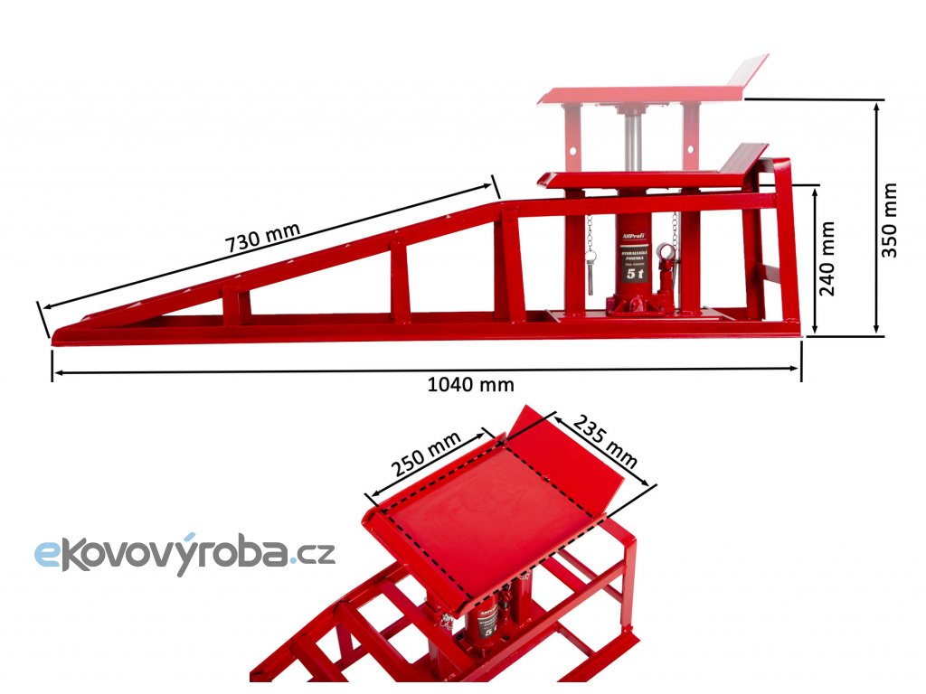 Kovové nájezdové rampy jsou určeny pro osobní a menší dodávkové vozy a slouží ke snadnému servisu či opravám podvozkových částí vozidel. Díky integrované hydraulice umožňují bezpečné zvednutí vozidla bez nutnosti použití samostatného heveru.