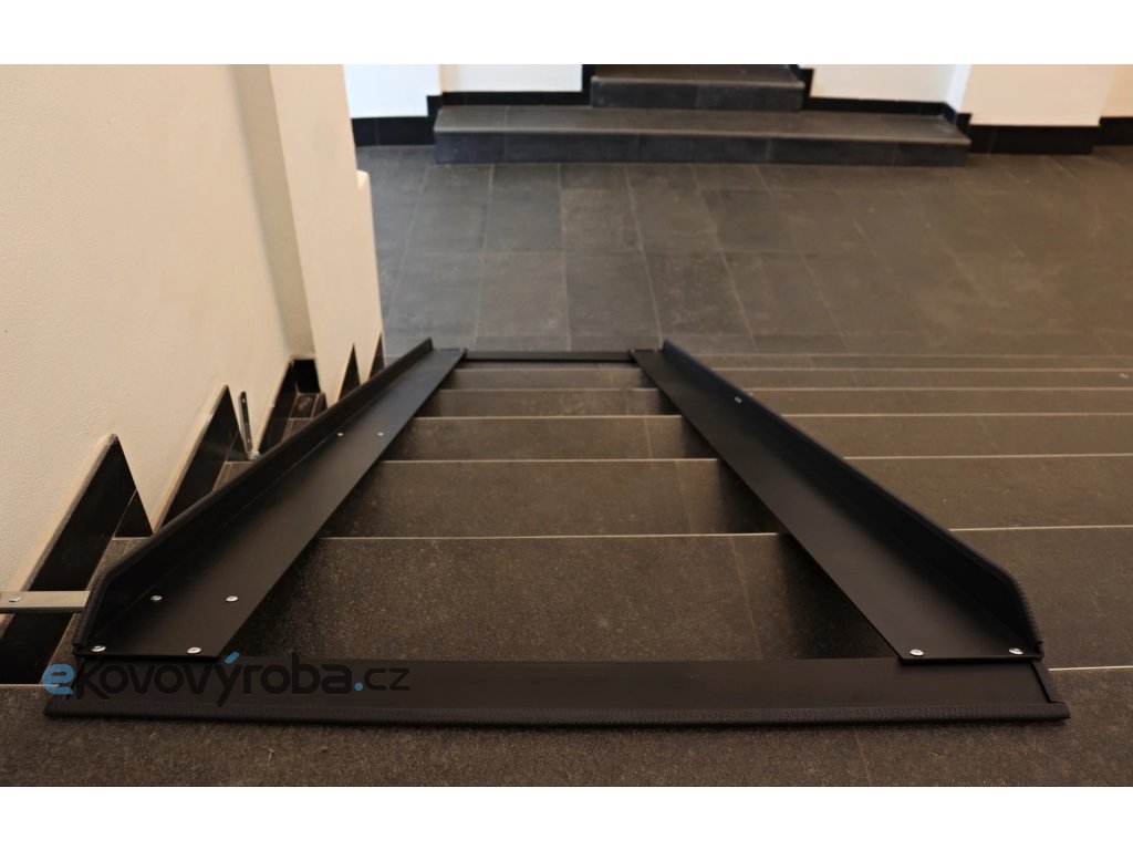 Protiskluzový systém a ochrana ostrých hran. Rozteč pro kolečka vám upravíme na míru. Standardně však děláme 45-65 cm. Délku na místě také přizpůsobíme. Uchycení je buďto napevno, nebo sklopné na panty s magnetickým uchycením. Manipulace s nájezdem je velmi snadná a bez problémů ji zvládne každá maminka. Možno je také dokoupit uzamykatelnou petlici. Nájezdy je také možné nechat volně a případně je odnášet do kumbálu.