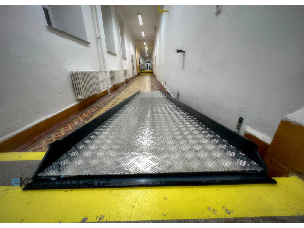 Hliníková univerzální rampa se liší tím, že nekopíruje hrany schodů a tím i úhel, ale je protažena a ve vzduchu. Proto se dá docílit mírnější sklon, avšak jsou použity silnější materiály. Protiskluzový systém a ochrana ostrých hran. Šířku a délku rampy vám upravíme na míru. Manipulace s rampou je velmi snadná a bez problémů ji zvládne každá maminka, ale i předškolák. Možno je také dokoupit uzamykatelnou petlici. Rampu je také možné nechat volně a případně ji odnášet do kumbálu.