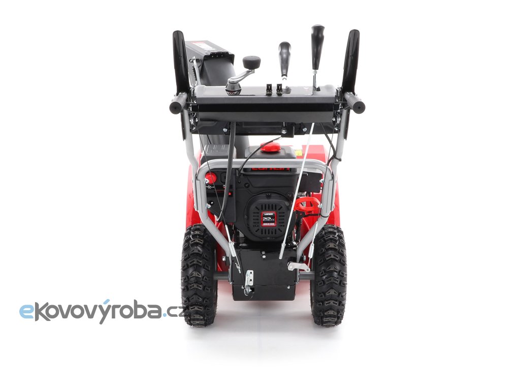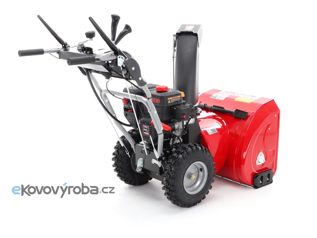 Fréza nabízí elektrické i manuální startování, což zaručuje pohodlný start i v mrazivých podmínkách. Velká kola o rozměrech 15x4” zajišťují stabilní pohyb i na kluzkém a nerovném terénu. Hmotnost stroje 90 kg přispívá k jeho robustnosti a stabilitě při práci.