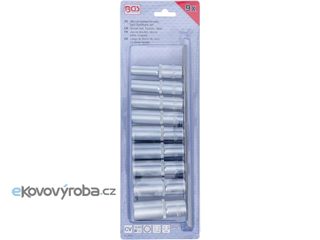 Sada nástrčných hlavic 1/2", dvanáctihran, 10 - 24 mm, 9 ks, BGS 5253