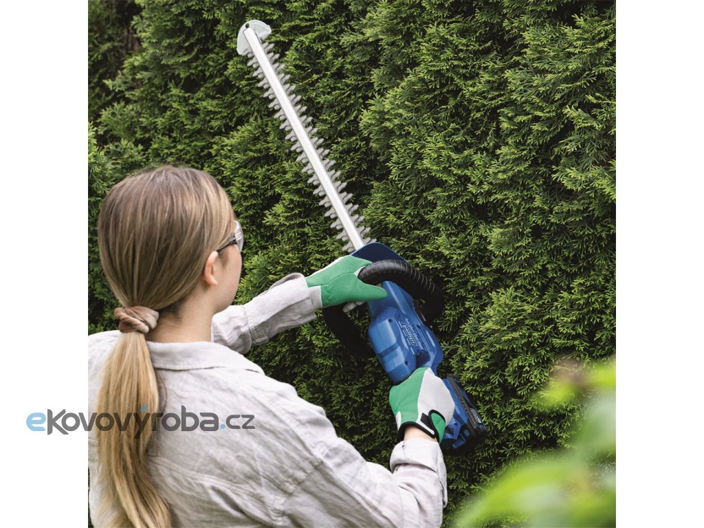 Nůžky jsou vybaveny výkonnou čepelí o délce 560 mm, která nabízí 2400 střihů za minutu a umožňuje tak přesný střih až do délky 510 mm. Jsou vhodné pro větve do průměru 16 mm, což z nich činí ideální nástroj pro pravidelnou údržbu zahrady. Ergonomické rukojeti s měkkým povrchem zaručují pohodlné držení a snadnou manipulaci. Součástí balení je ochranný kryt na lištu, který usnadňuje bezpečné skladování. Navíc mají nůžky integrovaný držák pro zavěšení na zeď, takže se dobře skladují. Tyto akumulátorové nůžky na živý plot vám usnadní zahradní práce a zaručí skvělé výsledky při minimálním úsilí. Stroj se dodává bez baterie a nabíječky.