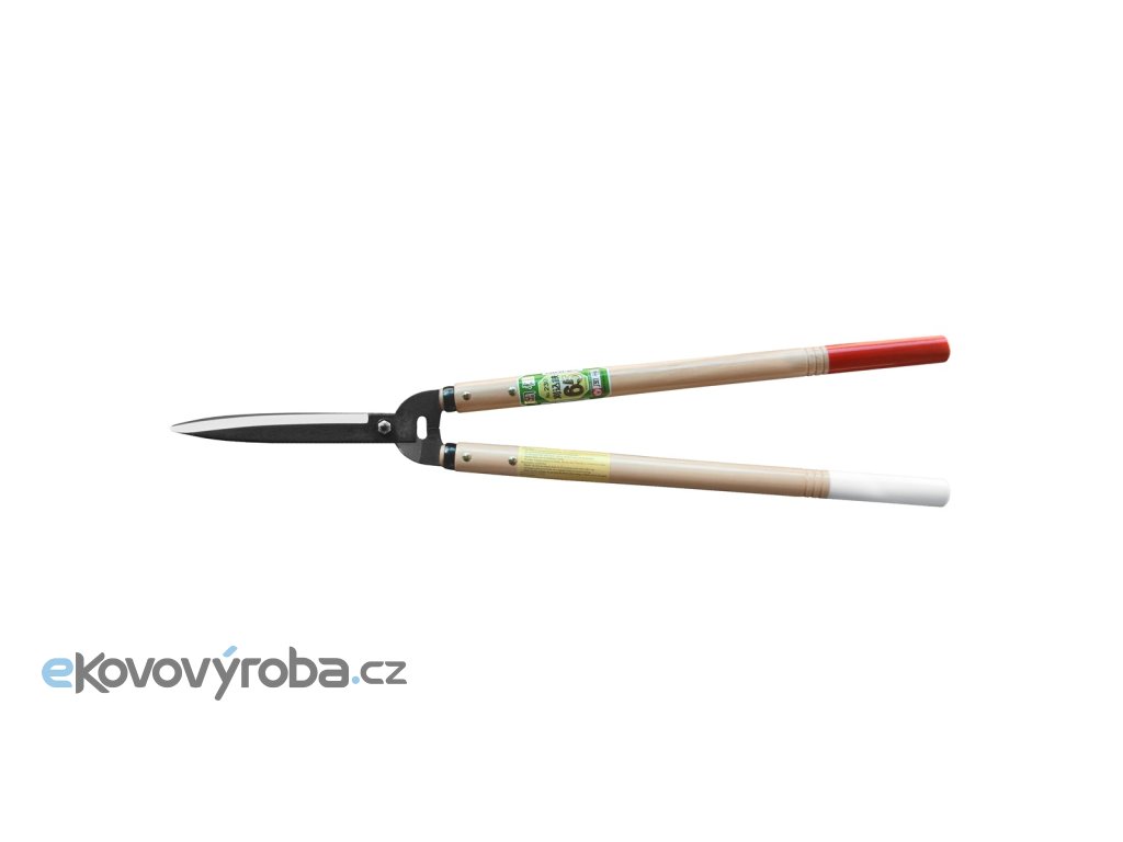 Nůžky jsou vybaveny 50 cm dlouhými dřevěnými rukojeťmi, které poskytují výborný pákový efekt při střihu. Čepele o délce 200 mm jsou naostřeny ve dvou úhlech, což zajišťuje hladký, čistý a tichý střih s minimální námahou. S hmotností 1050 g jsou navíc nůžky poměrně lehké a dobře vyvážené, což oceníte zejména při delším používání.