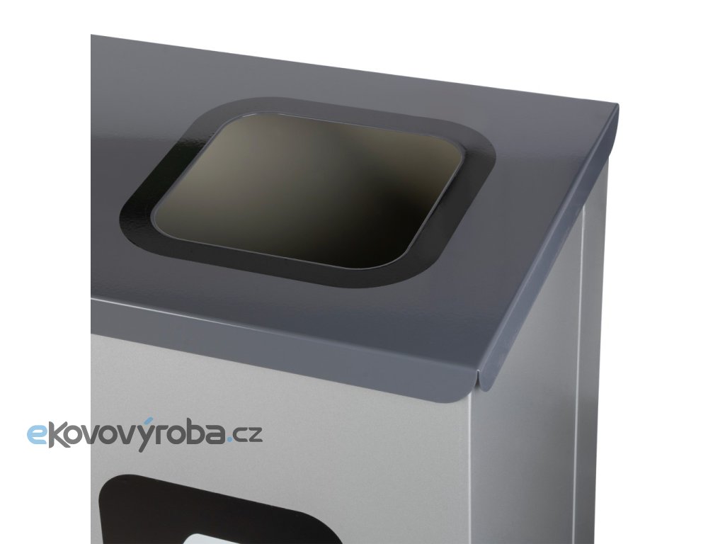 Víko stanice je vyrobeno z pozinkované oceli s práškovým nástřikem a pokrývá celé tělo. Víko má barevné rámečky kolem vhazovacích otvorů, které označují druhy odpadu podle směrnic Ministerstva životního prostředí – třídění odpadu je tak intuitivní.