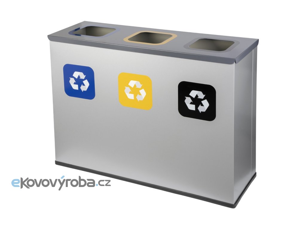 Třídílný odpadkový koš na tříděný odpad 3x60l šedý