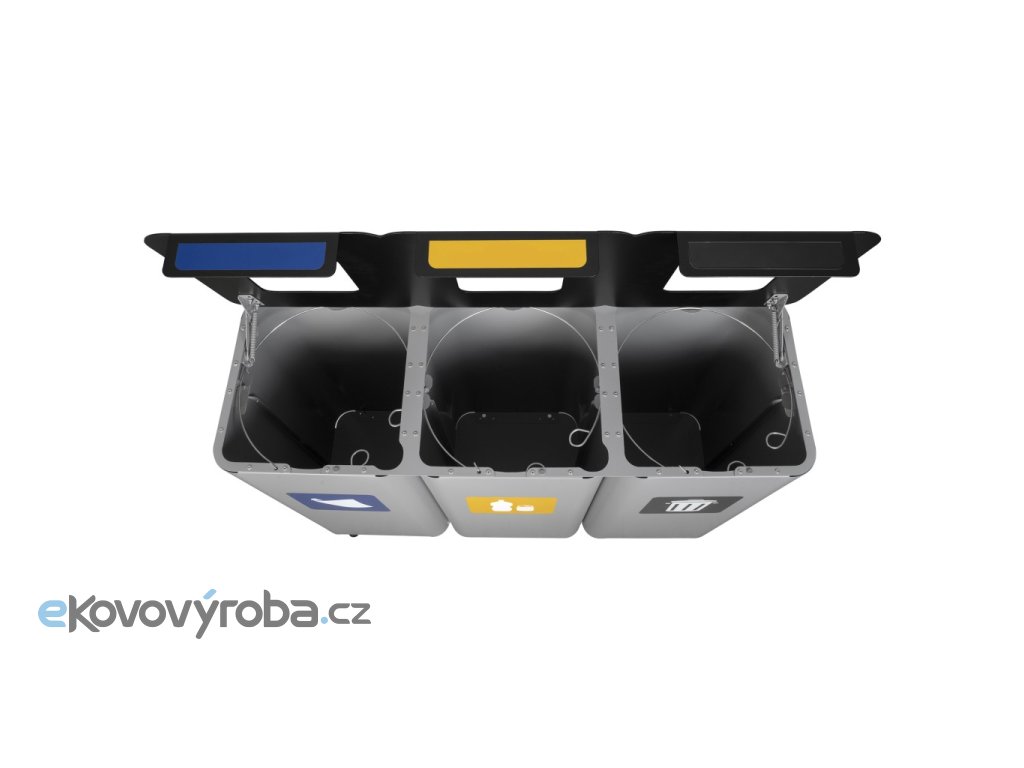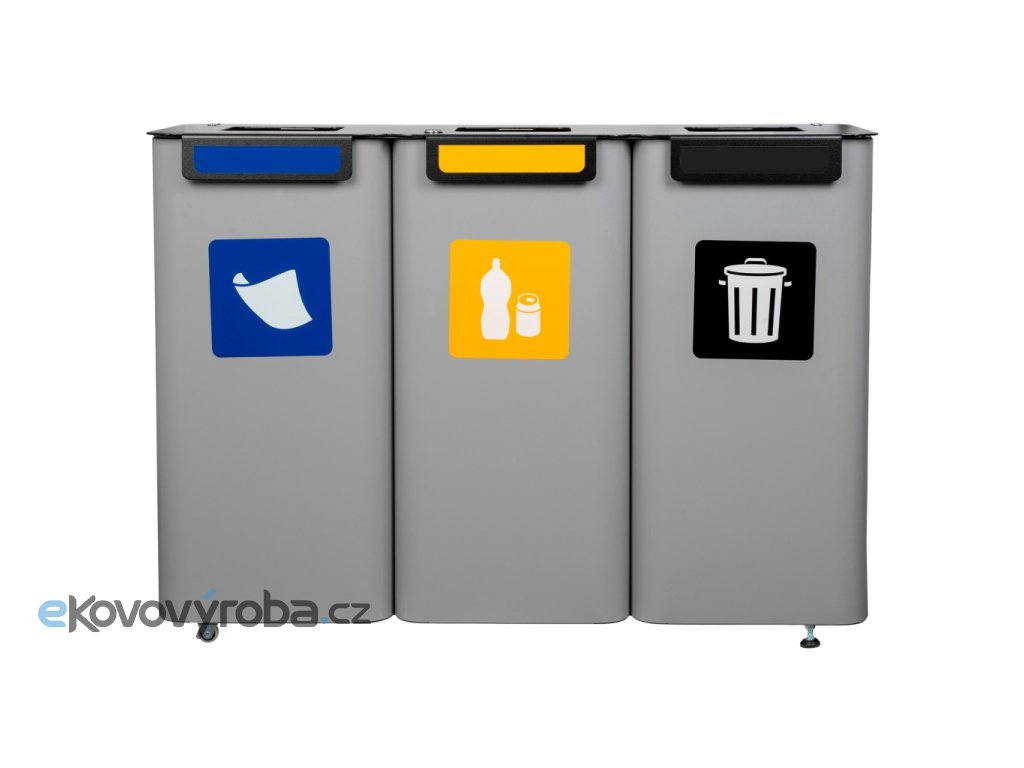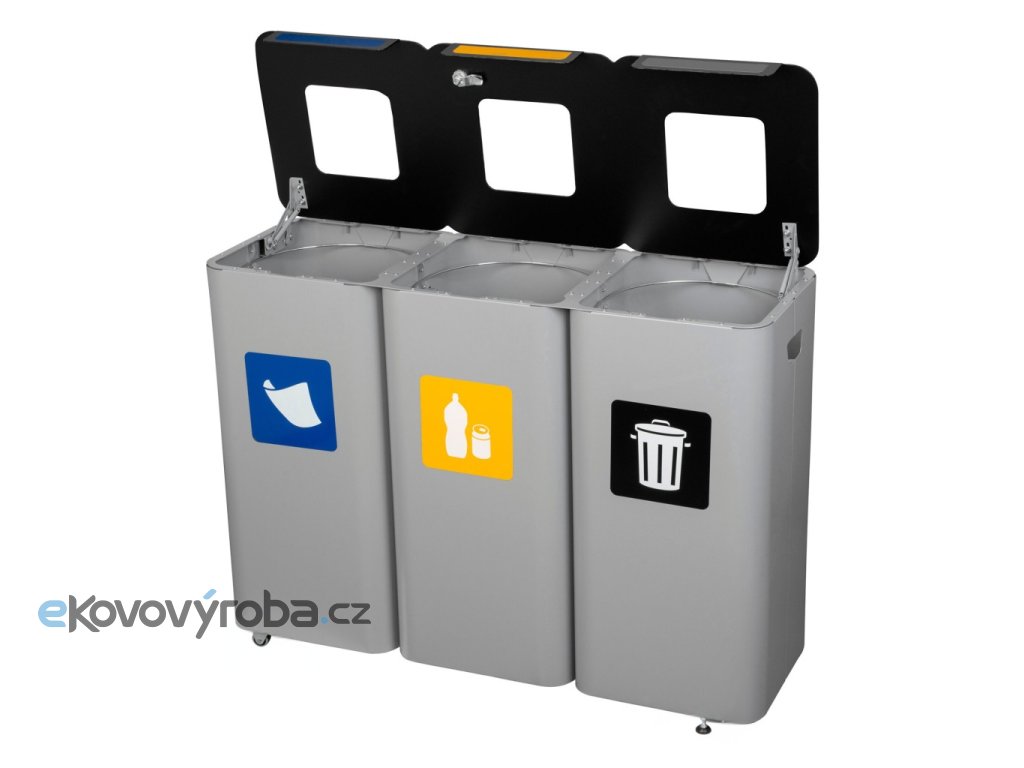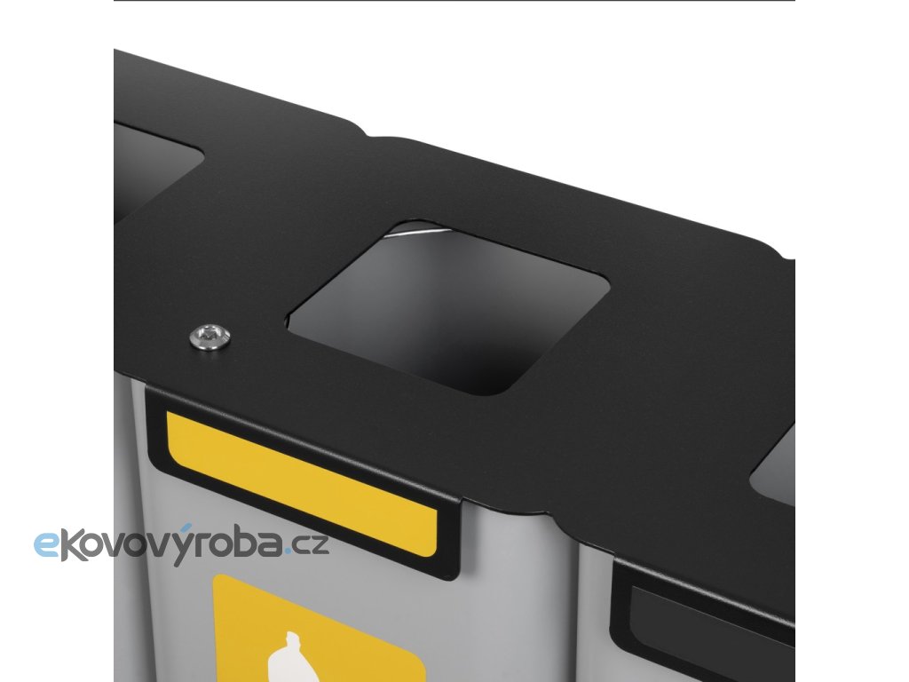 Modulární konstrukce umožňuje různé konfigurace a přizpůsobuje se rozmanitým potřebám uživatelů. Každý modul je vybaven ikonografickými samolepkami pro snadnou identifikaci frakcí odpadu. Další textový štítek na víku umožňuje přizpůsobit pojmenování typu odpadu podle umístění koše. Koš lze také vybavit barevnými překryvy nebo víky pro různé typy odpadu a volitelnou stříškou, která chrání obsah před vlhkostí, což je obzvláště užitečné ve venkovních prostorách.