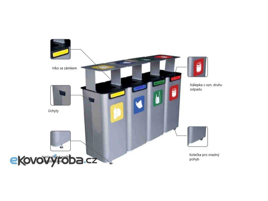 Pro větší funkčnost lze koš vybavit nádobou na baterie , popelníkem. Koš je standardně dodáván se dvěma kolečky pro snadné přemisťování a nastavitelnými protiskluzovými nožičkami pro stabilitu na různých površích. Boční rukojeti usnadňují přepravu.