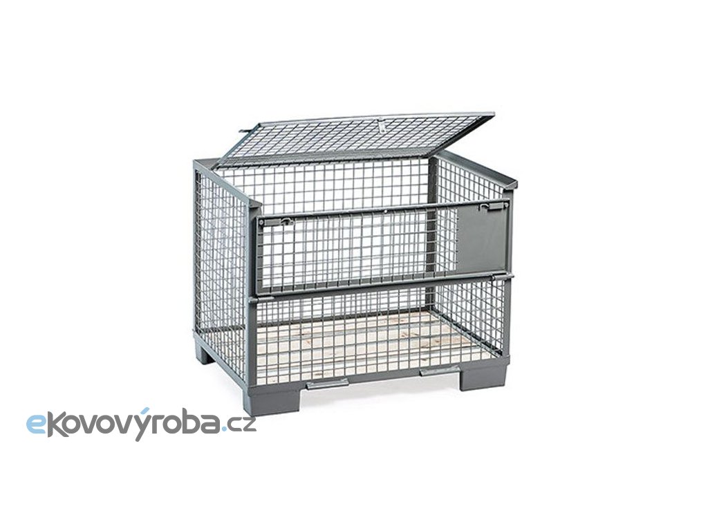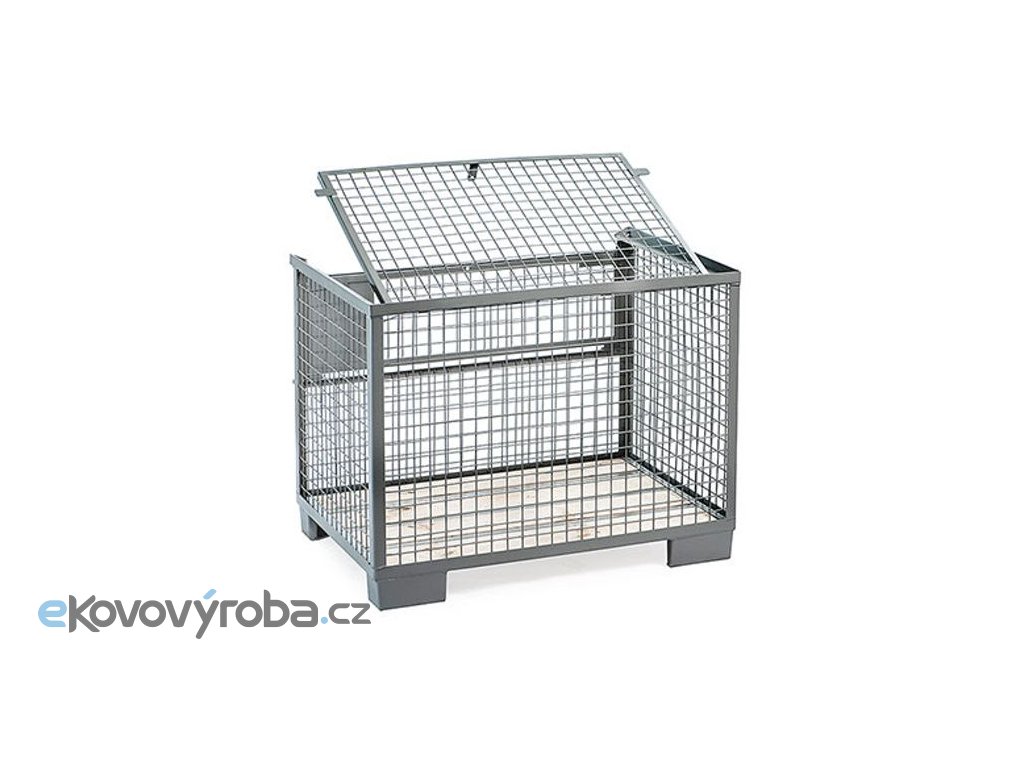 Box tvoří podlahový rám a síťované bočnice. Dodáváno v provedení s otevíratelným otvorem bočnice a horním otevíráním. Možnost manipulace pomocí nízkozdvižných i vysokozdvižných prostředků ze všech čtyř stran. Při manipulaci jeřábem musí být boxy zdvihány vhodným zvedacím rámem (působení pouze svislých sil). Možnost doplnění o podvozek pro zjednodušení manipulace po rovných a pevných podlahách.