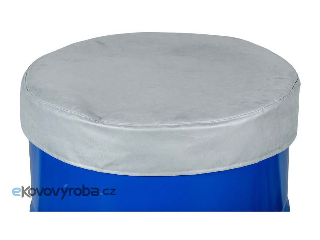 Izolační víko na ocelový sud o objemu 200 litrů. Kryt je vyroben z silikonem impregnovaného skelného vlákna a je vyplněn izolační vrstvou ze skelného vlákna o celkové tloušťce 6 mm.