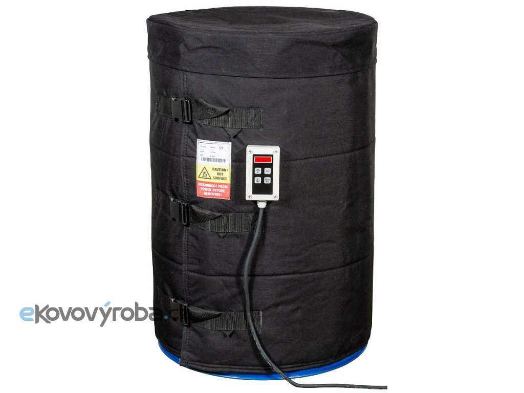 Izolační víko na ocelový sud o objemu 200 litrů. Kryt je vyroben z polyesteru a je vyplněn izolační vrstvou ze skelného vlákna o celkové tloušťce 6 mm.