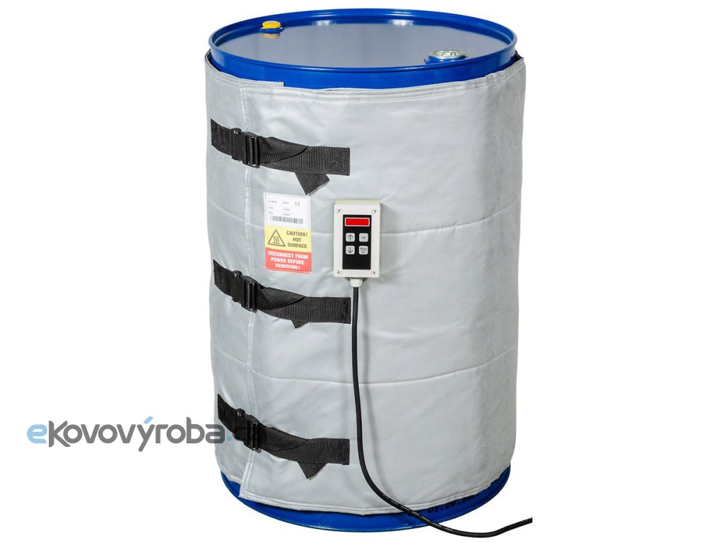 Obal na ocelový sud o objemu 120 a 105 litrů se silikonovým ohřevným tělesem o výkonu 1060 W/230 V. Rozměr pláště je 1650x700 mm. Součástí ohřívacího tělesa je digitální termostat pro nastavení a regulaci ohřevu v rozmezí 0°C - 200°C (32°F - 392°F) s teplotní pojistkou nastavenou na 225°C. Ohřev vody z 20°C na 82°C během 24 hodin. Obal má na sobě 3 přezky pro dotažení a upevnění na sud. Izolační vrstva je vyrobená ze skelného vlákna o tloušťce 6 mm. Přívodní kabel má délku 3 metry a není zakončen zástrčkou (lze dodat za příplatek), krytí IP40 (za příplatek je možné dodat s krytím IP54). (na obrázku je zobrazen i kryt na víko sudu - není součástí, objednává se zvlášť).