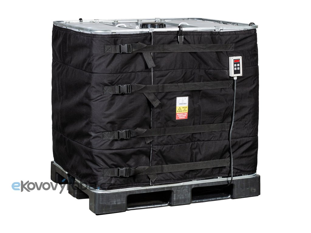 Polyesterový obal na IBC kontejner 1000 litrů se silikonovým ohřevným tělesem o výkonu 1x1300 W /230 V. Rozměr pláště je 4400x1000 mm. Součástí pláště je jedna zóna s vlastním digitálním termostatem pro nastavení a regulaci ohřevu v rozmezí 0°C – 40°C s teplotní pojistkou nastavenou na 167°C. Obal má na sobě 3 přezky pro dotažení a upevnění na sud. Izolační vrstva je vyrobená ze skelného vlákna o tloušťce 6 mm. Přívodní kabel má délku 3 metry a není zakončen zástrčkou (lze dodat za příplatek), krytí IP40 (za příplatek je možné dodat s krytím IP54). (na obrázku je zobrazen i kryt na víko sudu - není součástí, objednává se zvlášť).