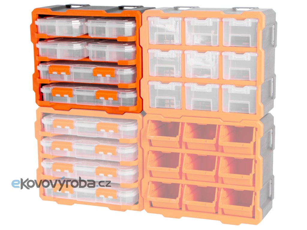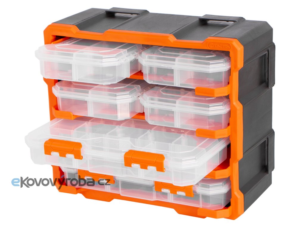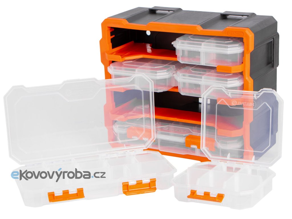 Praktický organizér navržený pro přehledné a bezpečné uložení spojovacího materiálu, drobného nářadí a dalších komponentů v domácích i profesionálních dílnách.