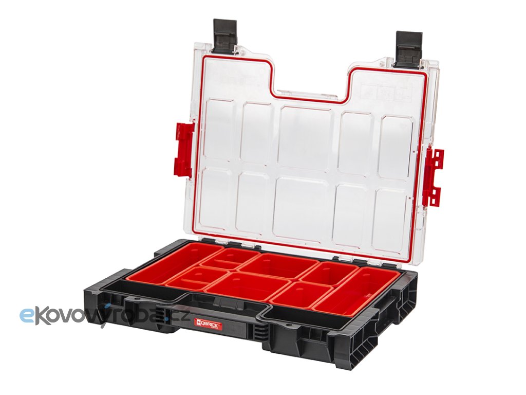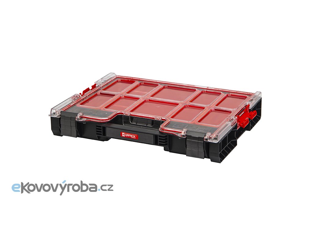 Kvalitní dílenský organizér, díky kterému si snadno zorganizujete šrouby, matičky, vruty či jakékoliv drobné příslušenství. Čtyři druhy přihrádek pro uspořádání malého a podlouhlého příslušenství – 8 kontejnerů, 2 přihrádky. Jednotlivé produkty QBRICK mezi sebou můžete propojovat a vytvořit tak sadu boxů dle potřeby. - víko z tvrzeného polykarbonátu a zesílená žebra, zajistí vysokou odolnost- polyamidové přední uzavírací klipy, které zajistí 100% těsnění- pevná a ergonomická rukojeť- těsnění na víku, které zajistí ochranu proti vodě a prachu- modulární konstrukce, díky které můžete výrobek propojit s dalšími produkty QBRICK