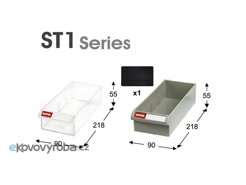 - Jednotlivé plně průhledné plastové boxy o rozměrech (Š x V x H) 90 x 55 x 218 mm.