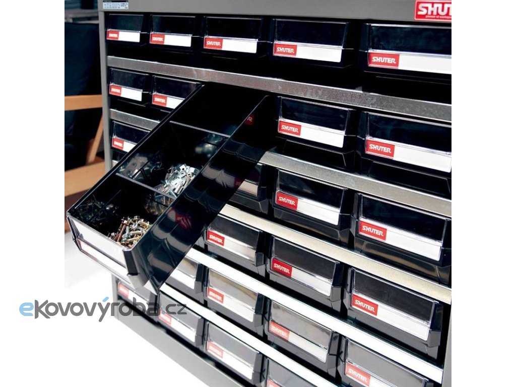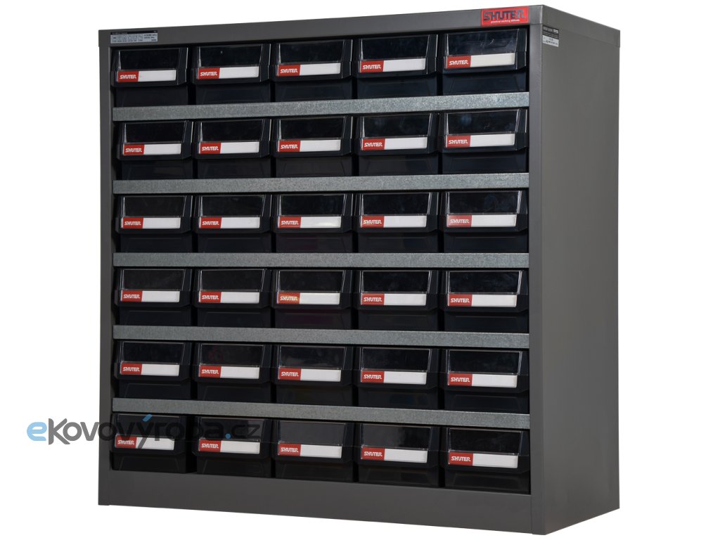- Dílenský kovový organizér pro uložení montážního materiálu a nářadí s 30 zásuvkami.