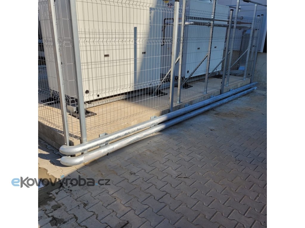 Zábrana je tvarována do hladkého oblouku, což zajišťuje bezpečné odklonění případného nárazu vozidla a minimalizuje riziko poškození zařízení umístěného za ní.