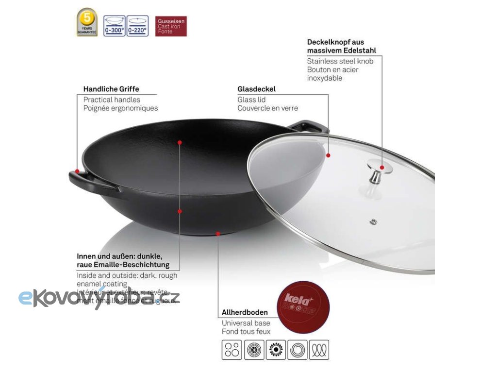 Pánev KELA Wok s poklicí litinový Calido 36 cm černá KL-12475
