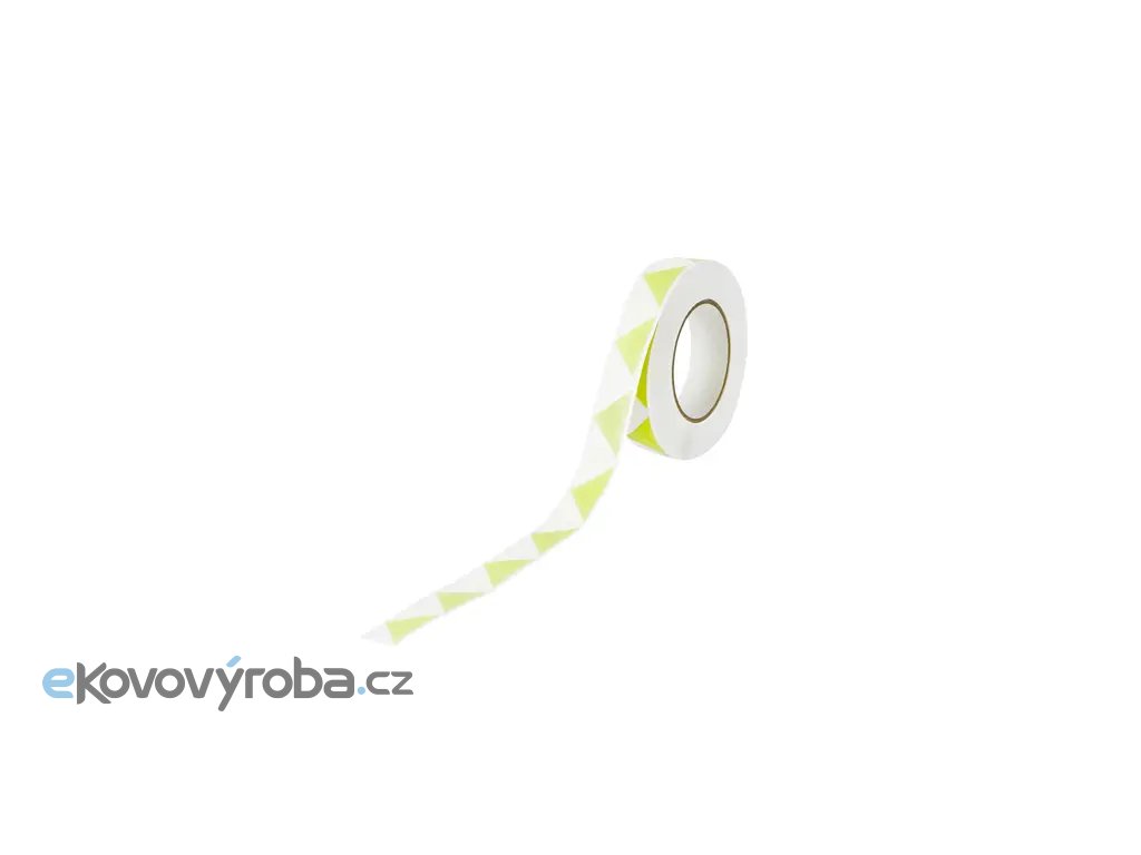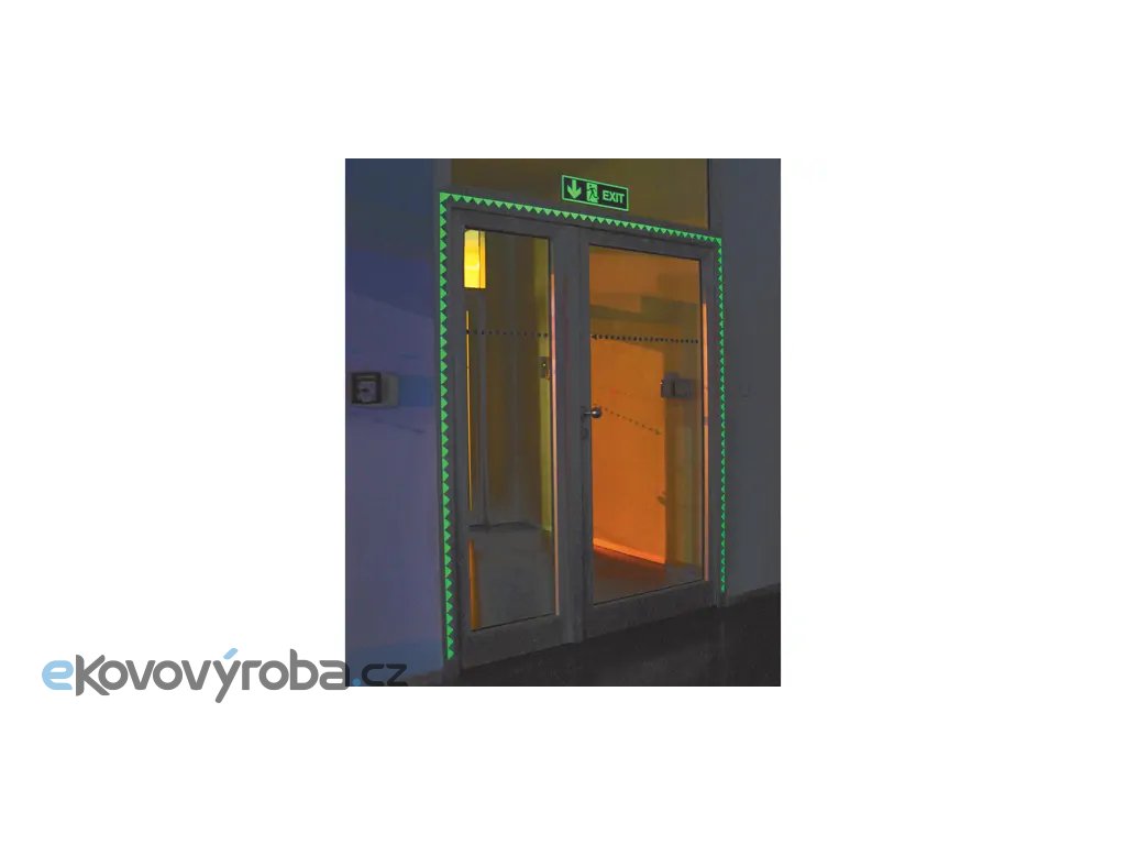 Páska je vyrobena ze samolepicí fólie. Výstražné barevné provedení bílá / fotoluminiscenční zelená upozorňuje na případnou překážku ve dne. Díky fotoluminiscenční vlastnosti materiálu značení vyzařuje světlo i při zhoršených světelných podmínkách. Umožňuje tak stále dobře vidět části strojů nebo označení únikových cest. |