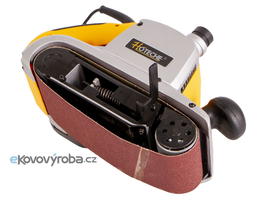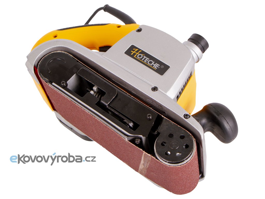 Pásová bruska od značky Hoteche s příkonem 1200 W. Přístroj najde využití při broušení, odstraňování starých nátěrů apod.