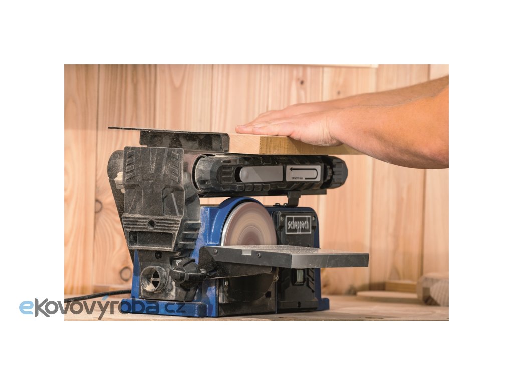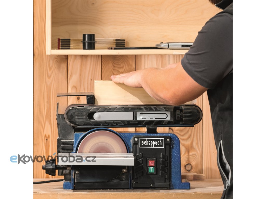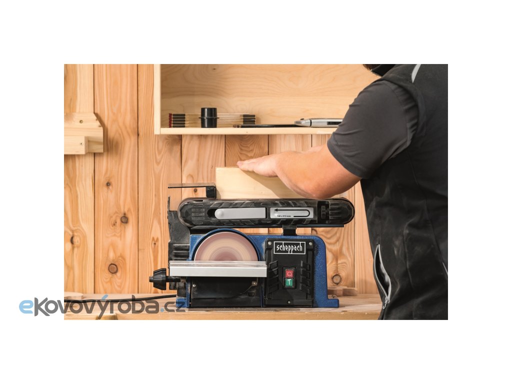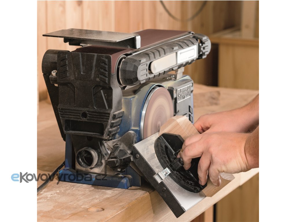 Multifunkční bruska Scheppach BTS 900 dokáže díky spojení brusného pásu a klasické kotoučové brusky vyřešit všechny úkoly spojeném s broušením ve vaší dílně. Brusný papír se na kotoučovou brusku přidělává jednoduše pomocí suchého zipu. Důležitý faktem je, že kotoučová bruska nepřesahuje svým obrysem přes hranu brusného pásu, takže na pásu můžete brousit i obrobky s velkou plochou. Výsledek je pak vždy vynikající.