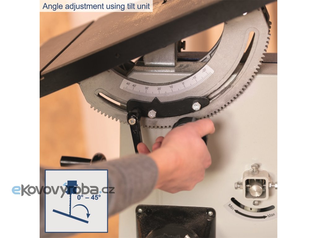 Pásová pila Scheppach BASA 3 je profesionální stroj, který v sobě zahrnuje většinu jedinečných technologických řešení z celé řady BASA, ověnčené mnohými tituly. Tato stolová pila tak nabízí mnohem více, než její konkurenti ve třídě. Vše začíná velmi precizním vedením pilového pásu na třech kalených heavy-duty válečkách, a to jak nad, tak i pod stolem. Pás je přesně veden na velkém, speciálně centrovaném a broušeném kole s gumovým povrchem. To je součástí unikátního systému nastavitelné rychlosti Vario Drive. Horní část držáku pilového pásu je výškově nastavitelná otáčením ovládacího kolečka. Pás sám se dá bleskově vyměnit díky jednoduchému mechanizmu s rychloupínací pákou. Masívní stolek je vyroben z litiny a dá se naklápět v rozmezí -8° až +45°. Stolek dodává dostatečnou podporu pro obrobek a díky úpravě povrchu výrazně snižuje tření, takže obrobek po něm můžete naprosto přesně posouvat. Velmi přesné pravítko, osazené pro zlepšení čitelnosti měřítka zvětšovacím sklem, se dá uchytit z obou stran pilového pásu. Pila se vyznačuje i vynikajícími hodnotami řezné výšky a šířky, které dělají 205 mm a 306 mm. Pásová pila je rovněž vybavena konektorem pro připojení odsavače pilin a robustním stojanem s kolečky a výsuvnou pákou pro snadný transport. Na výběr je jak varianta na 230 V, tak i na 400 V.Podmínky prodloužené záruky naleznete zde.Případné bezpečnostní pokyny, výstrahy a upozornění jsou součástí návodu k obsluze, který je k dispozici v sekci KE STAŽENÍ.