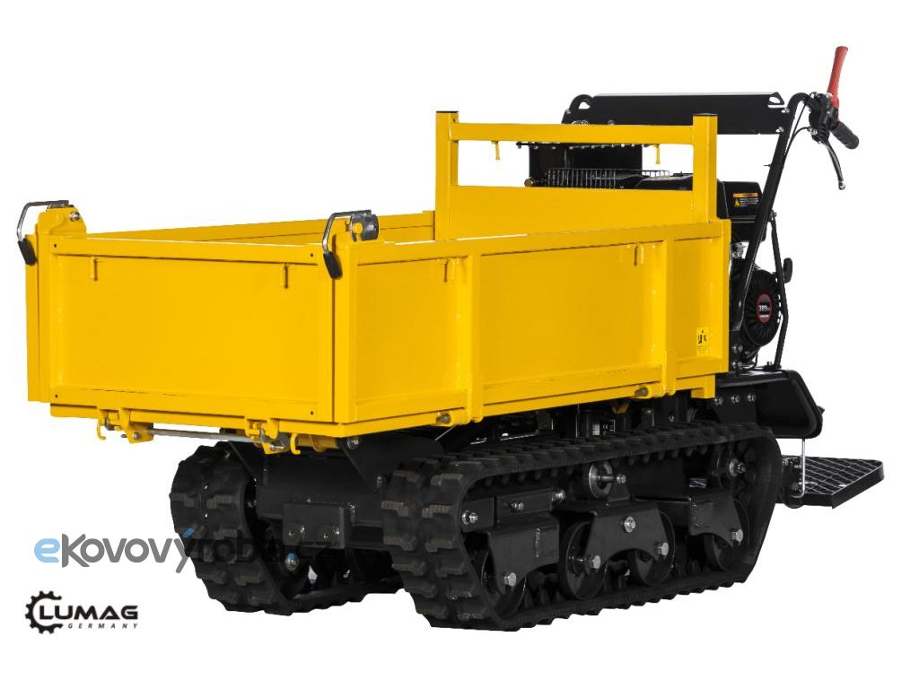 - Malý pásový sklápěč je konstruován pro snadné použití například pro převoz nákladů po náročném terénu, nebo na odklízení sněhu.