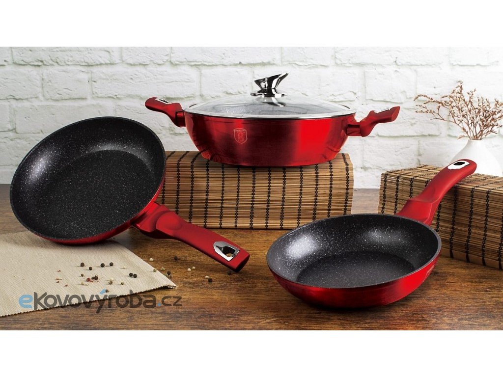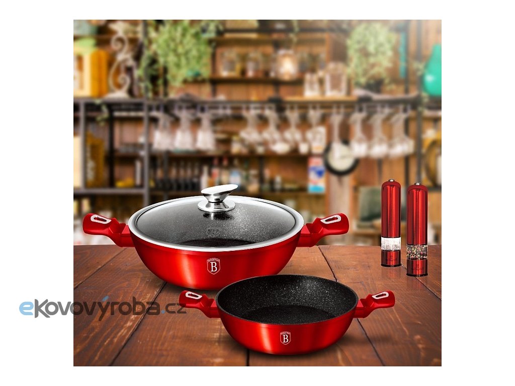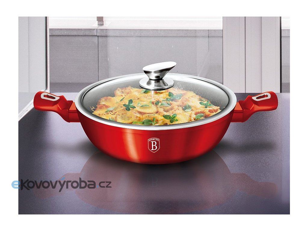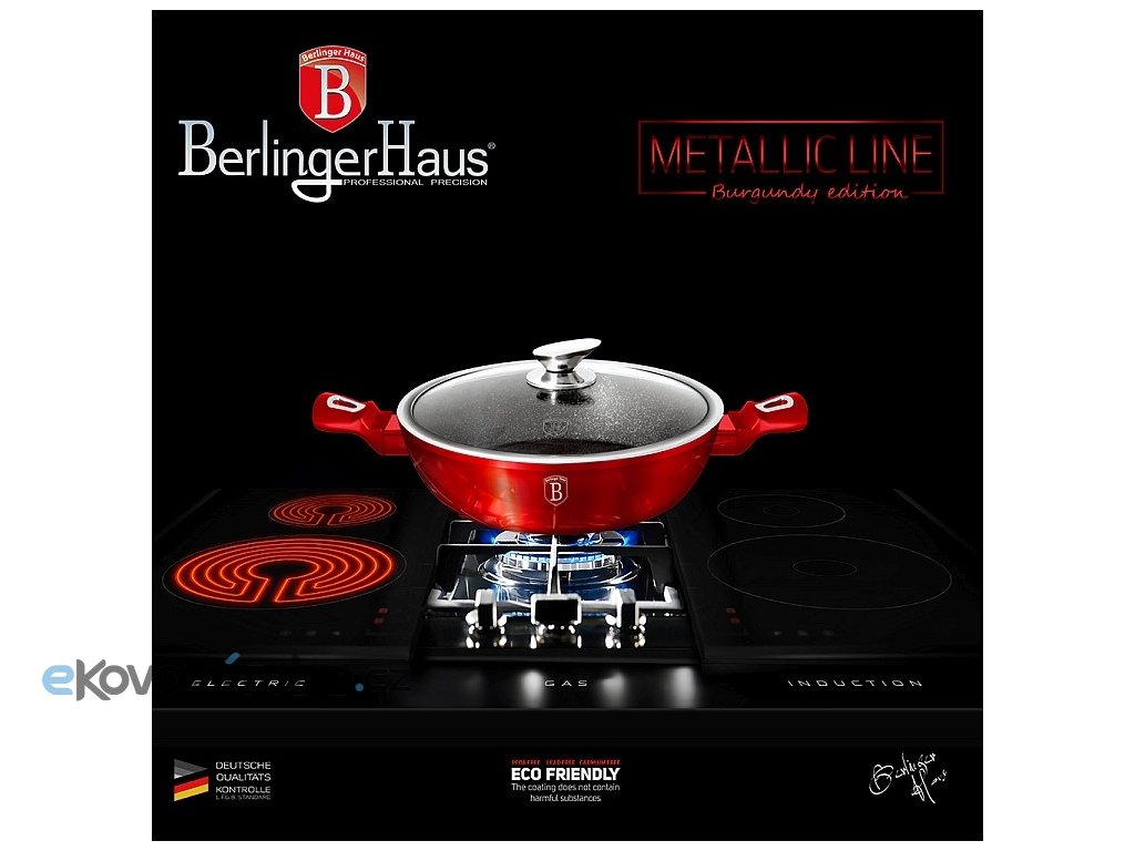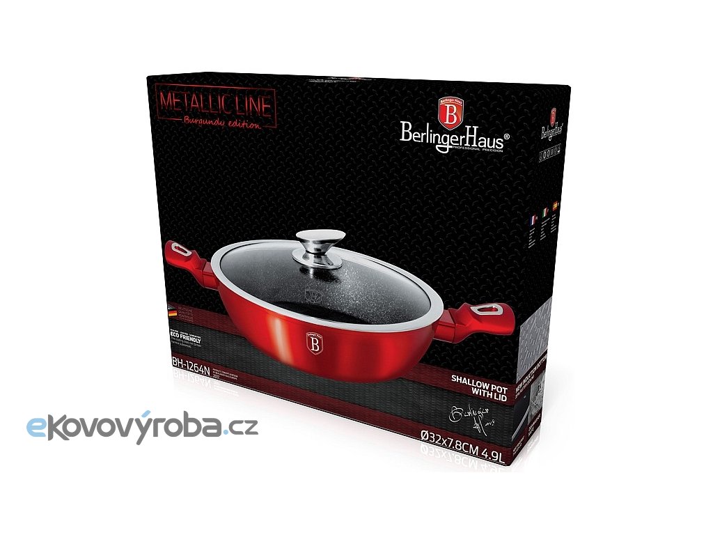 Pekáč Berlingerhaus kulatý s mramorovým povrchem a poklicí 32 cm Burgundy Metallic Line BH-1264