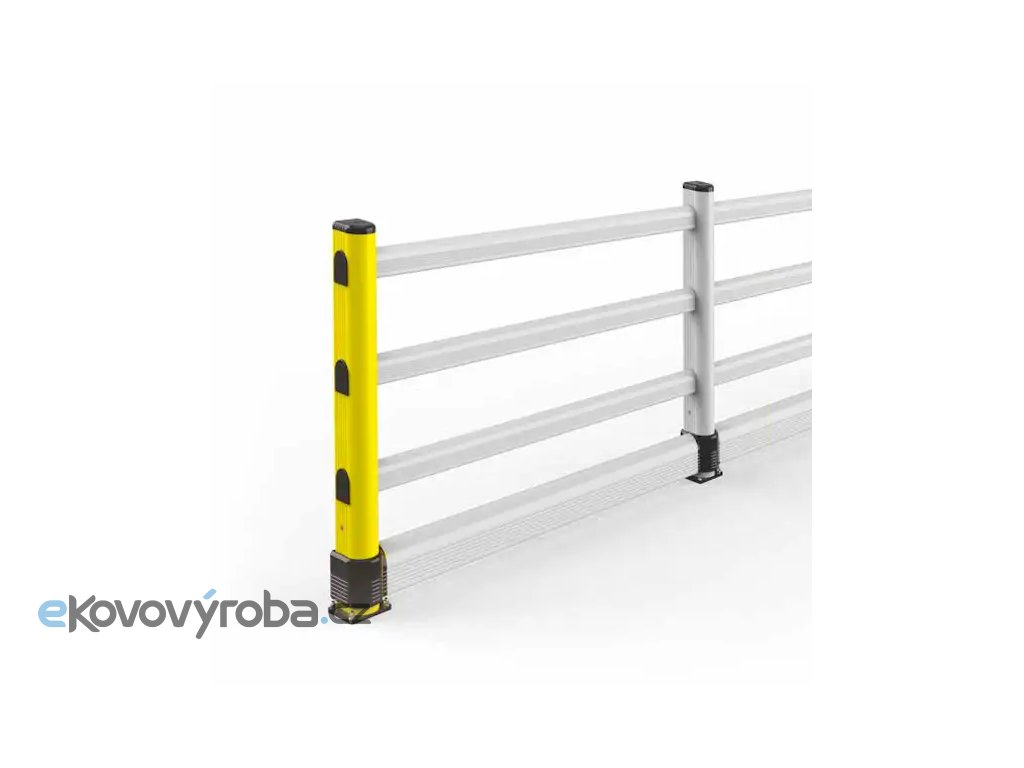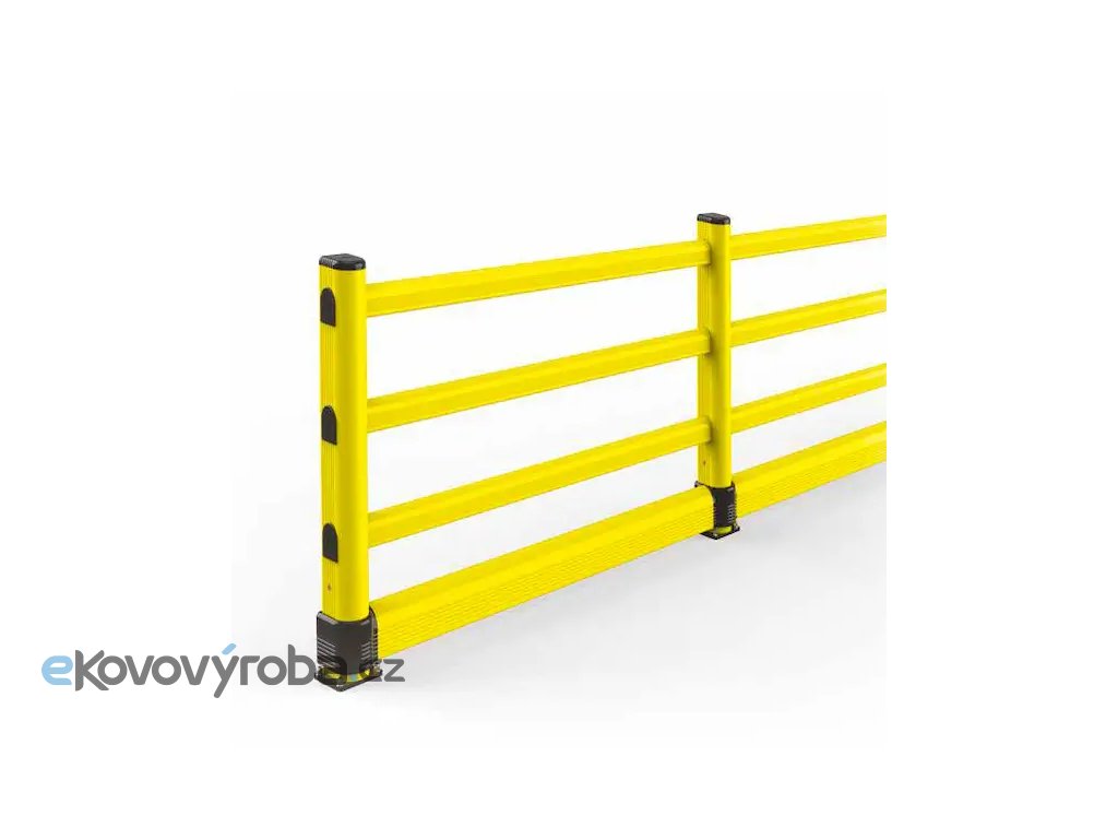 Zábradlí se skládá z pružných příčnic a sloupků, které jsou připevněné k podlaze ocelovými patkami a kotvami. Patky mají povrchovou úpravu práškovou barvou a kotvy jsou z galvanizované oceli. Zábradlí je vyrobené z materiálu, který je vysoce chemicky i mechanicky odolný a samozhášivý. Výrazná žlutá barva zvyšuje viditelnost a bezpečnost provozu. Montážní materiál je součástí dodávky. |