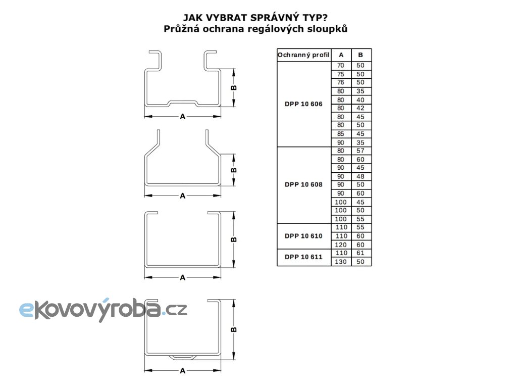 Pro správný výběr ochranného profilu je vhodné změřit si rozměry regálového sloupku. V tabulce si jednoduše najdete velikost ochranného profilu.