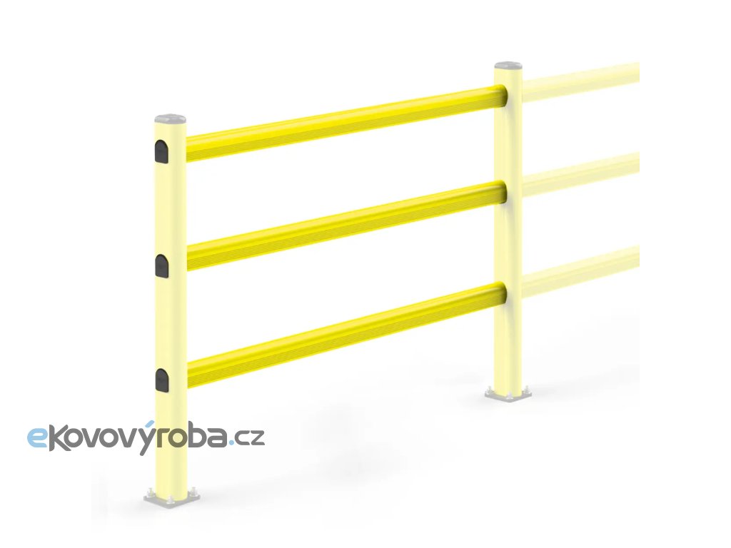 Zábradlí se skládá z pružných příčnic a sloupků, které jsou připevněné k podlaze ocelovými patkami a kotvami. Patky mají povrchovou úpravu práškovou barvou a kotvy jsou z galvanizované oceli. Zábradlí je vyrobené z materiálu, který je vysoce chemicky i mechanicky odolný a samozhášivý. Výrazná žlutá barva zvyšuje viditelnost a bezpečnost provozu. Montážní materiál je součástí dodávky. |
