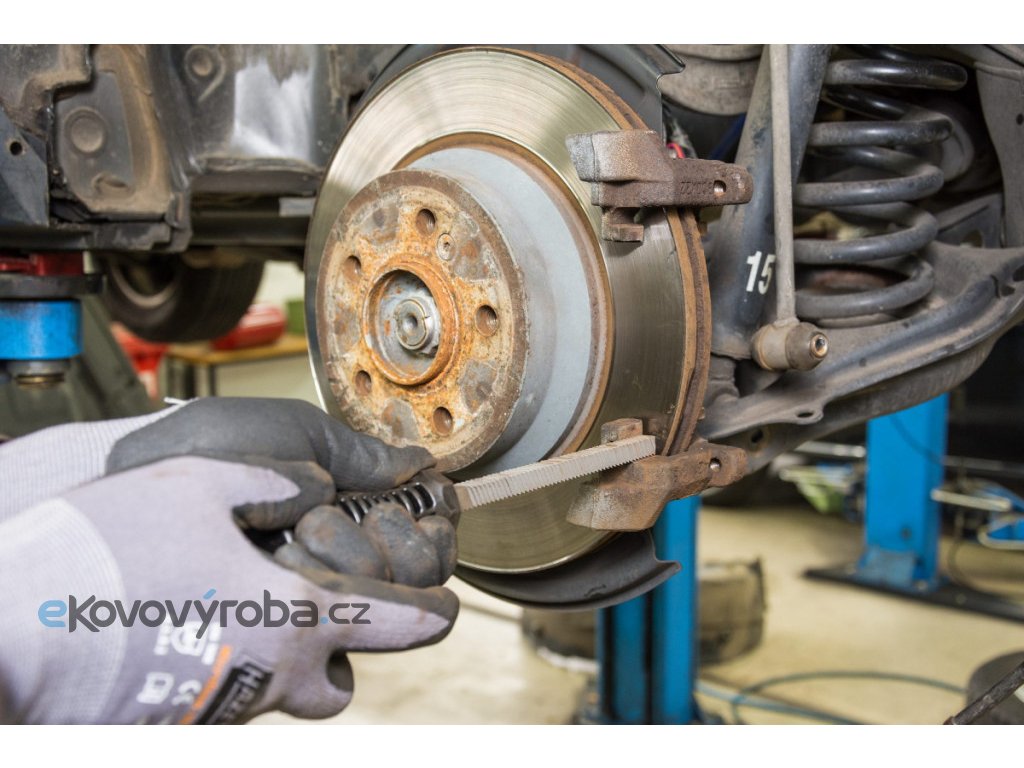 Profesionální 4hranný pilník na brzdové třmeny od německé firmy HAZET, je navržen, aby usnadnil odstranění tvrdého prachu z brzdových destiček, korozi i další nečistoty, které se ukládají na brzdovém třmenu. Dřík je o rozměru 10 x 10 x 155 mm a celkové délka s plastovou rukojetí dosahuje 265 mm. Tvarovaná rukojeť je zakončuje poutko pro zavěšení.