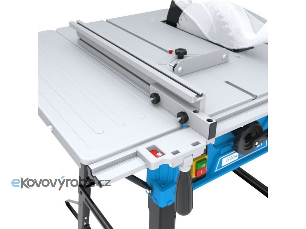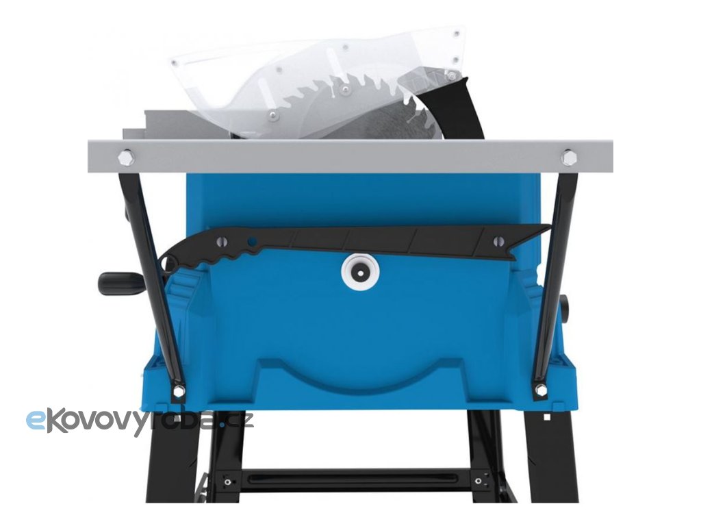 Plynulé nastavení řezné výšky (úhlu sklonu) pilového kotouče ruční klikou • boční nástavce stolu pro rozšíření pracovní plochy na (až) 925 x 630 mm.
