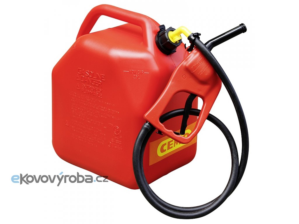 Kanystr 25 l s ruční pumpou v čerpací pistoli. Čerpání probíhá tak, že opakovaným mačkáním páky pistole čerpáte PHM. Max. výkon pumpy závisí na intenzitě mačkání páky, cca 5-7 l/min. Rozměry: 36 x 24 x 43 cm