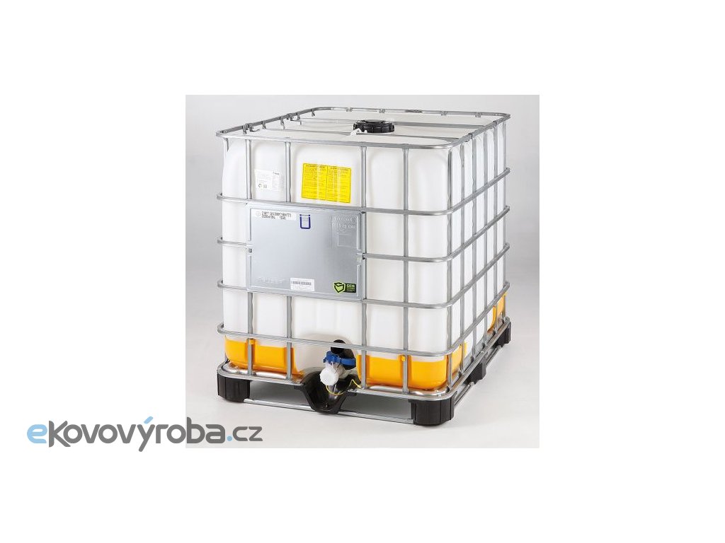 Vyrobeno z plastu Polyetylenu s vysokou hustotou (HDPE) Snadná viditelnost hladiny – stupnice po 100 litrech. Vysoká životnost díky novému provedení palety a ocelové konstrukce. Jednoduchá a bezpečná manipulace pomocí kulového výpustního ventilu. Plombovatelný, stohovatelný. Opatřeno certifikací pro přepravu nebezpečných látek vyžadujících obalovou skupinu II. a III.