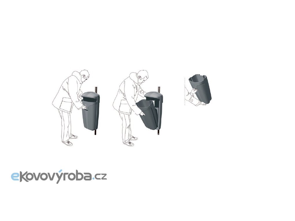 - Snadná instalace odpadkového koše na zinkovaný sloupek, sloup veřejného osvětlení apod.