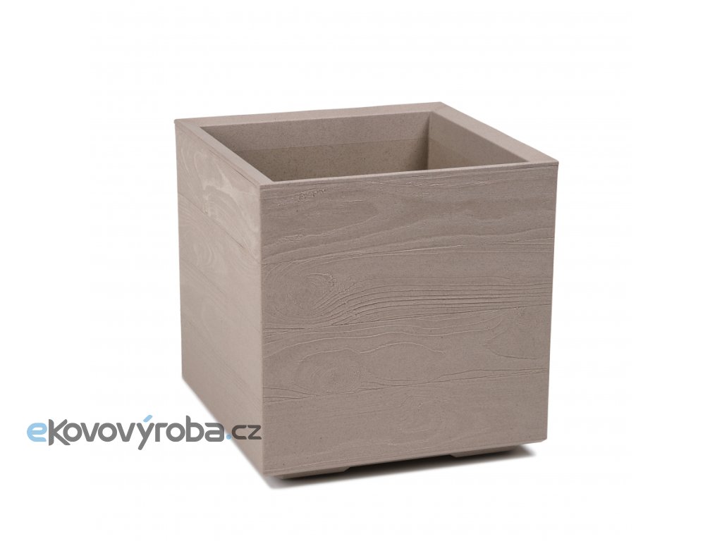 Plastová kostka z kolekce Karo eco coffee deska je moderní květináč ve tvaru kostky s povrchovou úpravou imitující dřevo.