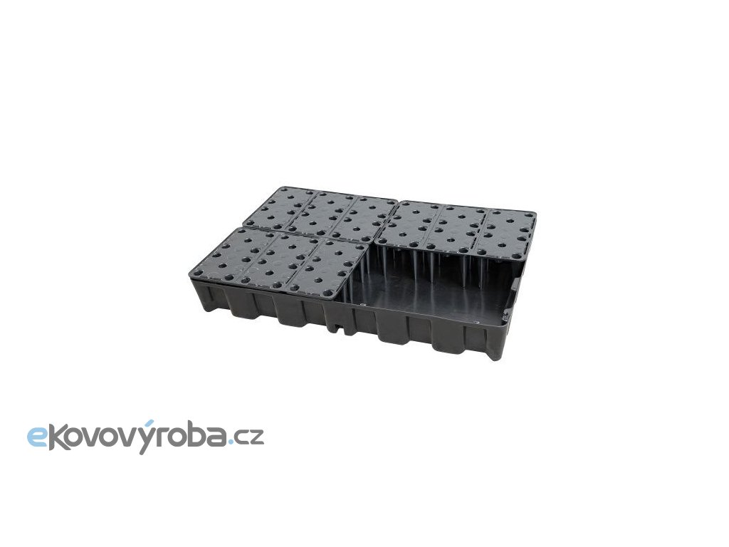 Polyetylenová záchytná vana bez roštu o objemu 120 l. Vyrobeno z vysoce kvalitního recyklovaného Polyetylenu (PE). Vhodné pro instalaci velkých nepravidelných ploch. Všechny velikosti záchytných van lze kombinovat (stejná výška). Všechny vany jsou opatřeny rovným dnem – umožňuje snadné uložení nádob na dno vany. Plastový rošt s rovnou vrchní plochou s protiskluzovým povrchem, velice stabilní konstrukce s mnoha podpěrnými body. Vhodné pro skladování / stohování na Euro paletách.