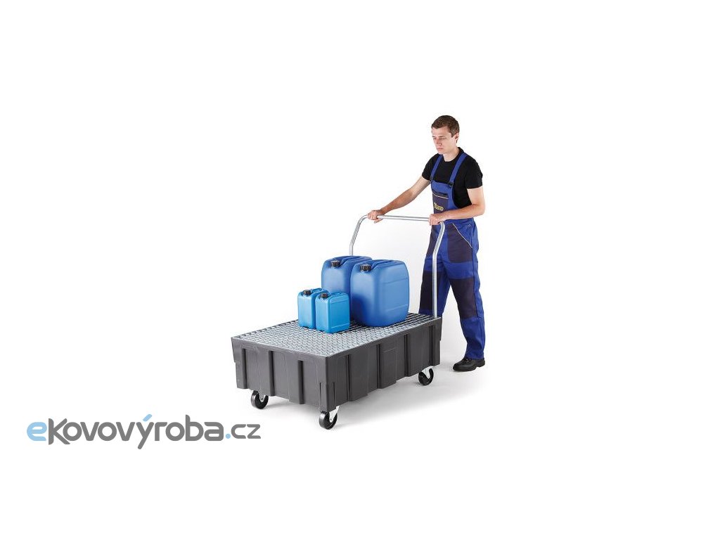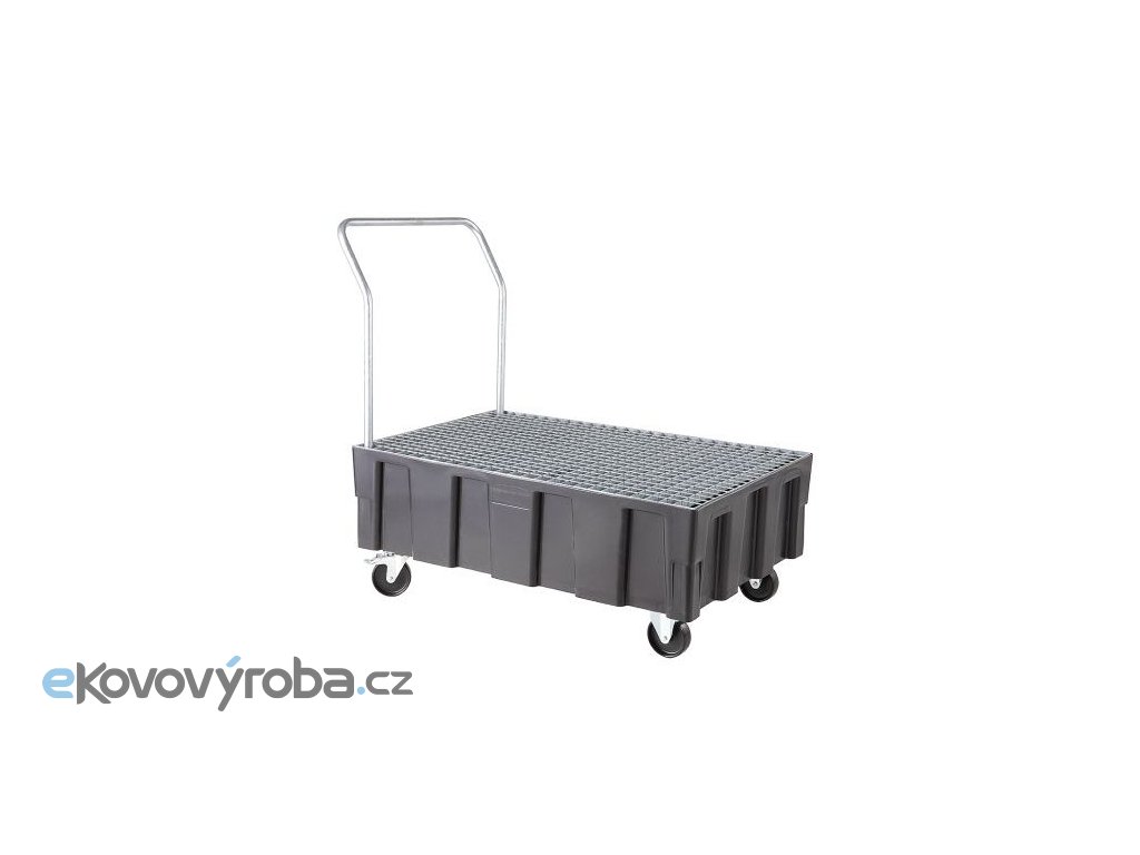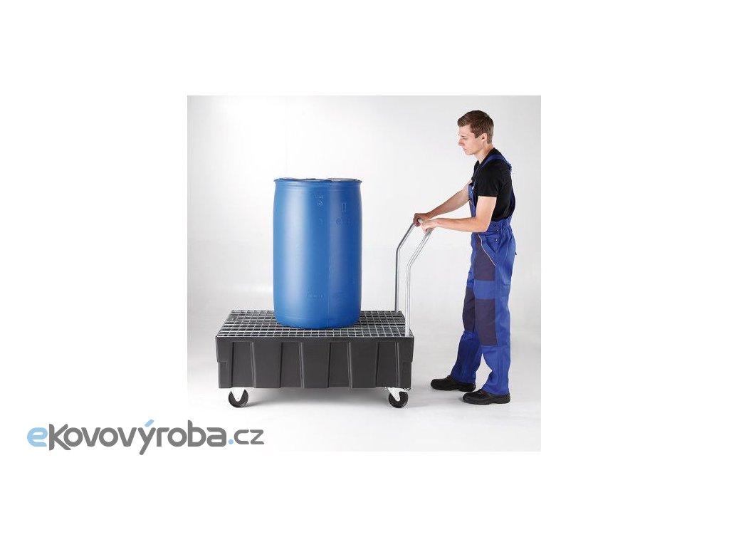 Pojízdná polyetylenová záchytná vana s žárově zinkovaným roštem a madlem. Vyrobeno z plastu Polyetylenu s vysokou hustotou (HDPE). Vybaveno vyjímatelným zinkovaným roštem. Vybaveno čtyřmi kolečky – 2x pevné, 2x otočné s brzdou. Záchytná vana disponuje nízkou hmotností. Snadná manipulace pomocí odnímatelného madla. Vhodné pro dva sudy do objemu 225 l.