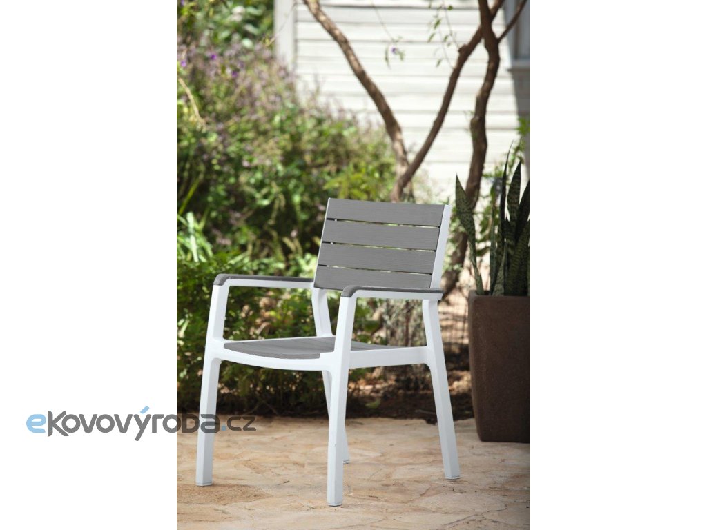 Zahradní židle Harmony značky Keter vás nadchne svým subtilním lookem a stylovým designem v kombinaci imitace dřeva a bílé umělé pryskyřice. Konstrukce je přitom pevná a vydrží běžné zatížení venkovního provozu.