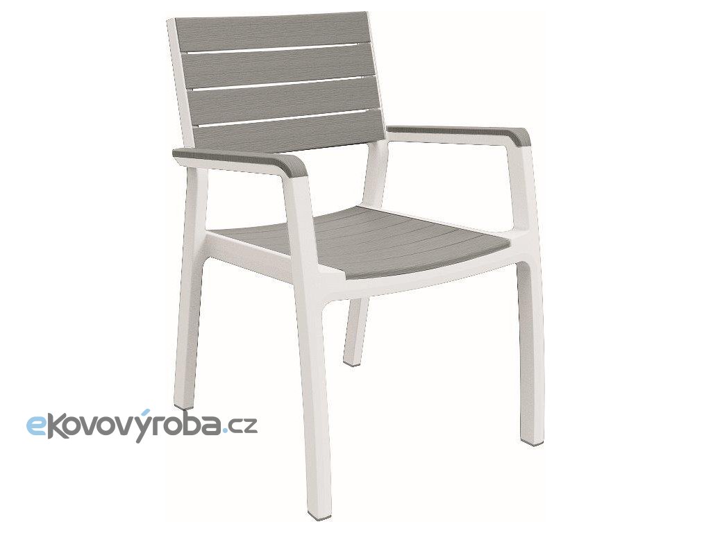 Šedo-bílou židli s područkami si prostě zamilujete. Perfektně ji doplní stůl Harmony ze stejné kolekce. Stohovatelná židle je již sestavená, není potřeba žádné speciální nářadí.