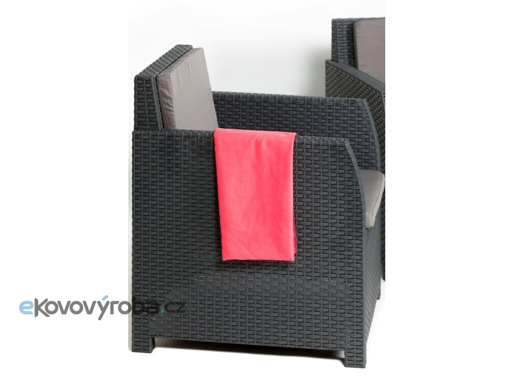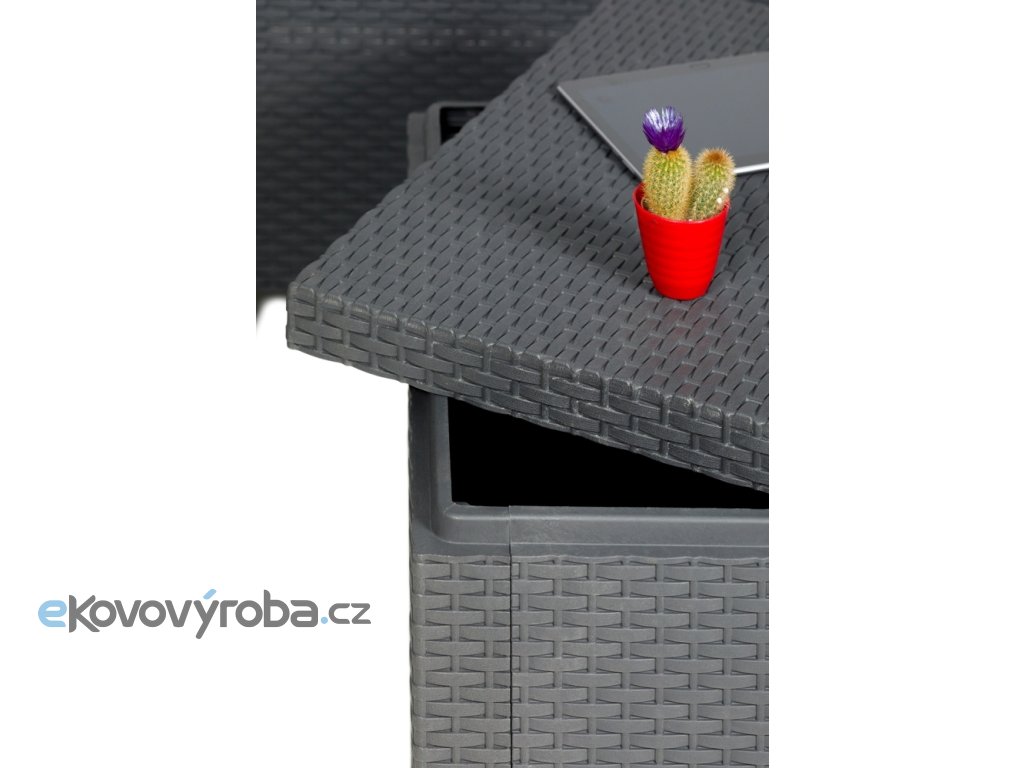 Zahradní plastový set DIANA 4 SEATERS v elegantním grafitovém provedení je ztělesněním dokonalého spojení elegance a praktičnosti pro Vaše venkovní posezení. Tento nadčasový set přináší pohodlí a styl do Vaší zahrady či terasy, zatímco se vypořádává s výzvami venkovního prostředí s nekompromisní odolností. STOLEK 2v1 - STŮL A ÚLOŽNÝ BOX Jeho sestava zahrnuje důmyslně navržený stůl s funkcí úložného boxu a dvojici křesel doplněných o sofistikovanou dvousedačku. Každý kus je pečlivě zkonstruován z lisovaného plastu v elegantním ratanovém designu, který dodává Vaší zahradě moderní nádech a působivý vzhled. POHODLÍ S PODUŠKAMI, ODOLNOST VŮČI POČASÍ Nejenže set DIANA 4 SEATERS nabízí krásu, ale také praktičnost díky odnímatelným a pratelným šedým opěrkovým i sedacím poduškám, které zajišťují maximální pohodlí během venkovního odpočinku. Díky odolnosti vůči UV záření a jednoduché montáži bez potřeby nářadí je tento set ideální volbou pro ty, kteří hledají stylové a snadno udržovatelné zahradní vybavení. EKOLOGICKÝ PŘÍSTUP A navíc, můžete mít pocit dobrého svědomí, protože tento set je vyroben z recyklovaného plastu, což z něj činí šetrnou volbu pro životní prostředí. S kapacitou pro čtyři osoby je DIANA 4 SEATERS perfektní volbou pro každou rodinnou oslavu, venkovní grilování nebo jednoduše pro chvíle klidu a relaxace pod širým nebem. Dovolte si zvýraznit svůj venkovní prostor tímto inovativním setem, který kombinuje krásu, komfort a udržitelnost do jednoho.