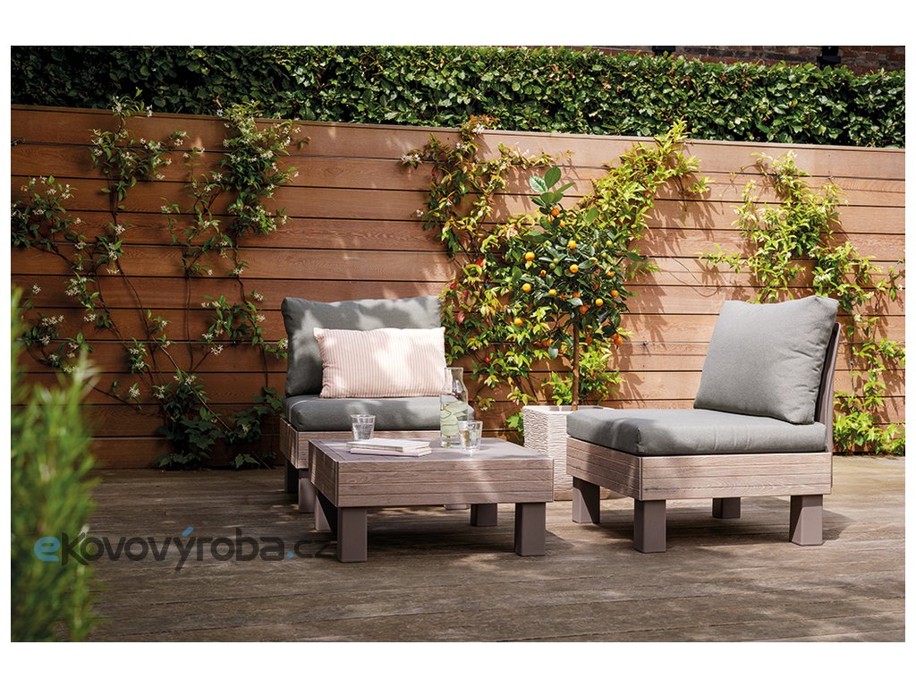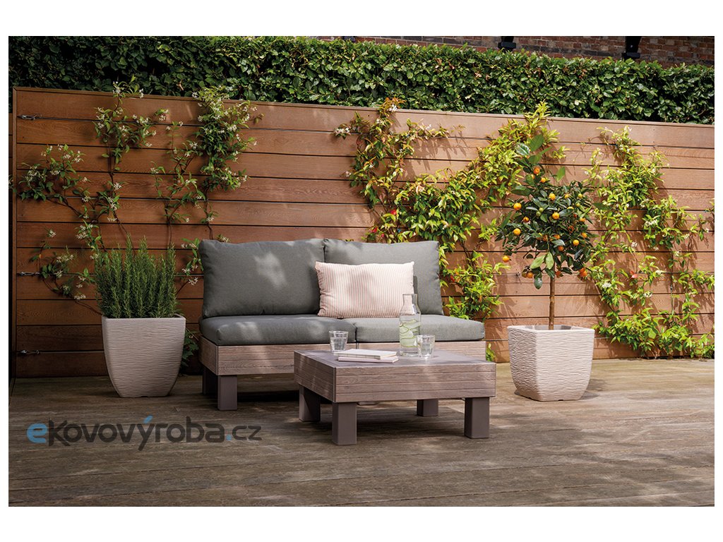Stůl pro set ELEMENTS SIGNATURE, kterým můžete set ELEMENTS ještě více rozšířit, nebo použít samostatně. Set ELEMENTS Vám umožní uspořádat si moderní venkovní posezení dle Vašich představ. A když budete občas potřebovat více křesel místo sofa, nebo jiné uspořádání, není to pro set problém. Díky chytrému modulárnímu systému, který nabízí mnoho možných konfirgurací, jednoduše přemístíte a zacvaknete jednotlivé prvky na požadované místo. Pro ještě větší pohodlí jsou součástí soupravy 9 cm vysoké podušky a opěrky. Podušky jsou z příjemného materiálu polybavlna a spodní část je z netkané textílie s protiskluzovým tečkami. Pevný lisovaný plast, z kterého je souprava vyrobena, je odolný vůči nepříznivým povětrnostním podmínkám a UV záření. Výhody soupravy ELEMENTS: jednoduchá montáž snadná údržba kompaktní způsob uskladnění, zabírající miminum místa pevný materiál připomínající dřevo kovové spojky