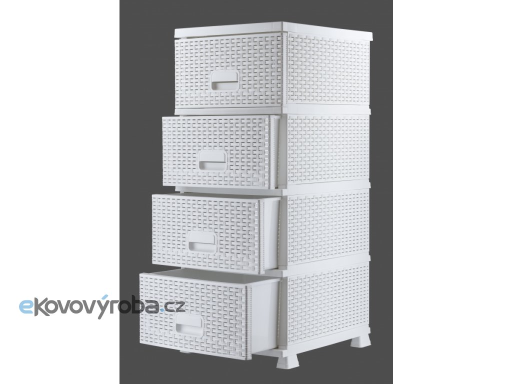 Mega Plast, RAF komoda polyratan, se zásuvnými šuplíky, 44 x 37 x 90,5 cm, bílá