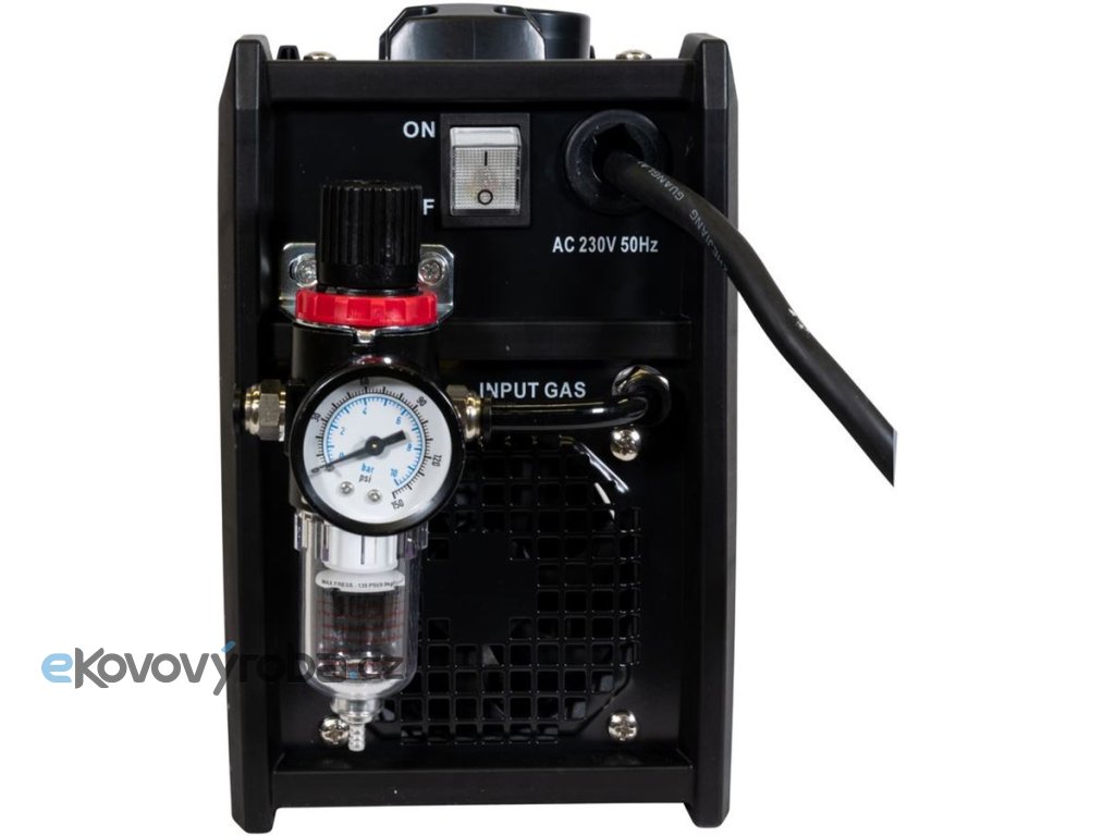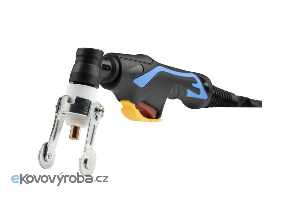 Příslušenství: 2,5 m plazmový hořák, zemnicí kabel se svorkou, 2 řezací trysky, 2 elektrody, distanční vodítko.