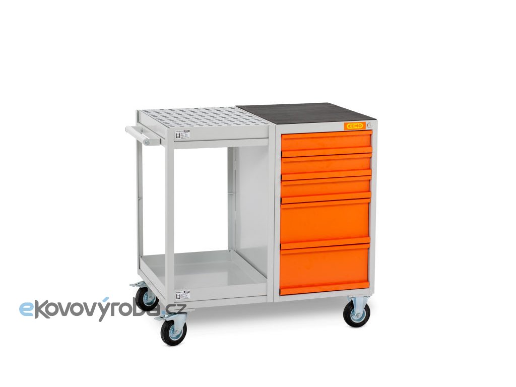 Ocelový dílenský vozík se záchytnou vanou a skříňkou se zásuvkami(11585)