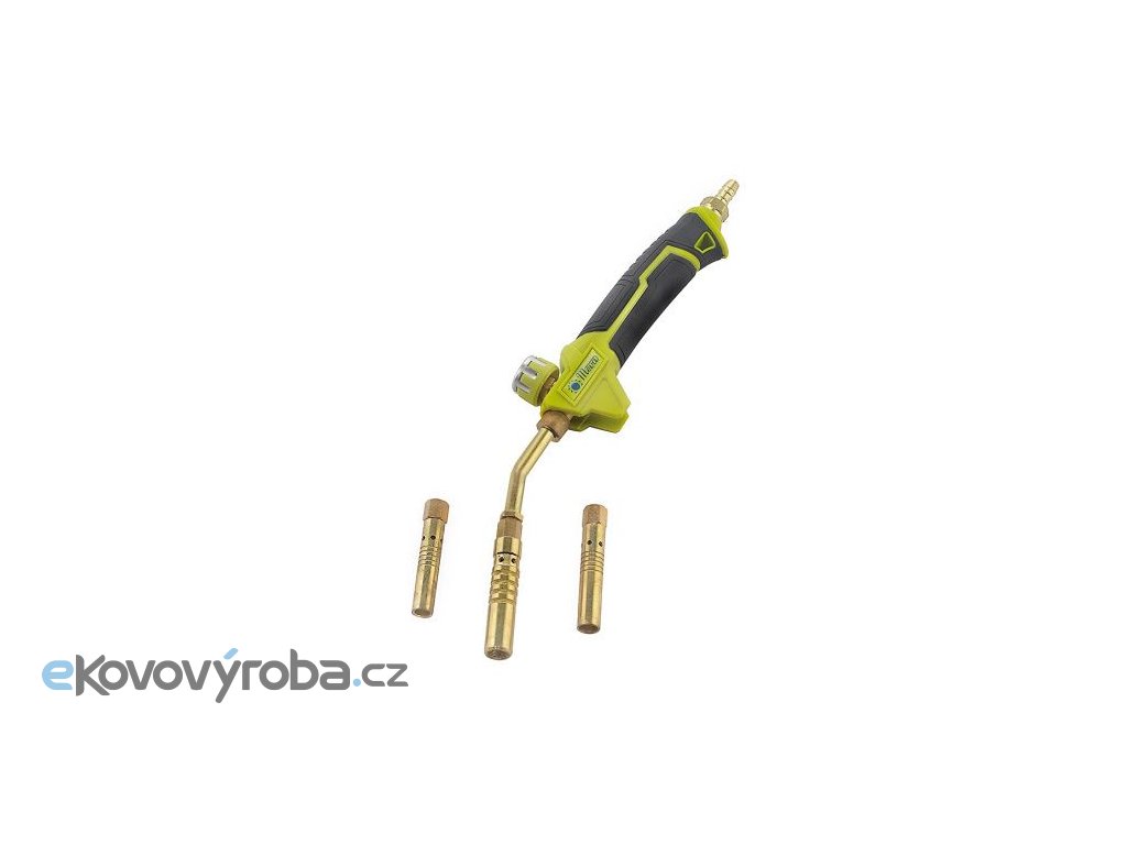 Souprava obsahuje rukojeť, 3 hořáky Připojuje se: - k 10kg LPG lahvi s regulátorem UNP01011 - k 2kg LPG lahvi s regulátorem UNP01011 a jednocestným ventilem U2156UV.
