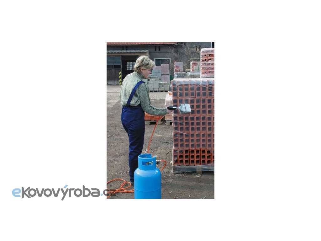 Pistole je přenosné zařízení na propan butan určené k ohřevu smrštitelných fólií při paletizaci. Pistoli lze použít i pro opravy poškozených obalů záplatováním, pro lepení asfaltových lepenek, opalování starých nátěrů apod. Je připojena hadicí přes redukční ventil k propan butanové láhvi. Regulační ventil a hadice není součástí balení.