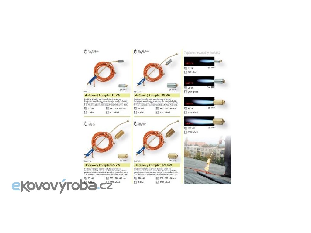 Stavební hořáky jsou určeny pro izolatérské a asfaltérské práce ve stavebnictví a pro ohřevy většího rozsahu. Pro připojení 10 nebo 33kg propanbutanové lahve je potřeba regulátor UNP01011 nebo U4498,který není součástí balení.